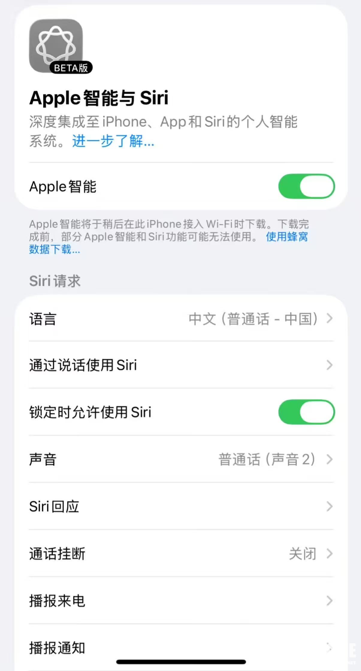 国行版Apple Intelligence曾于2026年3月31日凌晨意外上线,部分iOS 26.4系统的国行iPhone用户在设置中发现“Siri”变为“Apple智能与Siri”,并可下载包含端侧大模型的功能包,容量高达7GB以上。苹果发现随后紧急撤回该功能推送,并远程禁用已激活用户的AI能力。不仅未下载的用户无法再获取更新,已下载本地模型的用户也发现功能失效,部分用户反映模型文件虽未立即释放存储空间,但核心AI服务已被切断。