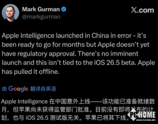 PChome 4月2日消息,前日凌晨,Apple Intelligence在国内意外上线,但因为苹果尚未获得监管部门批准,随后将其下线。
