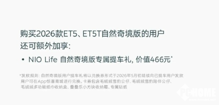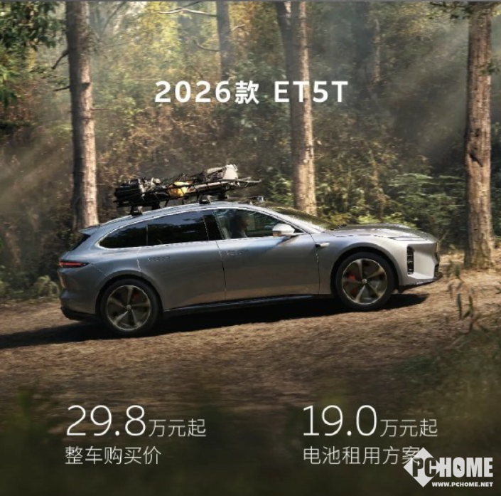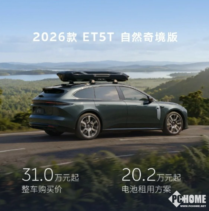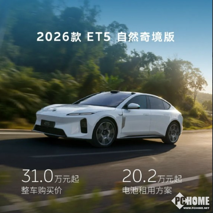 PChome 4月2日消息,蔚来汽车今日宣布2026款ET5、ET5T正式上市,整车售价29.8万元起,BaaS电池租赁方案19万元起,同步推出自然奇境版特别车型,进一步强化30万级纯电市场竞争力。