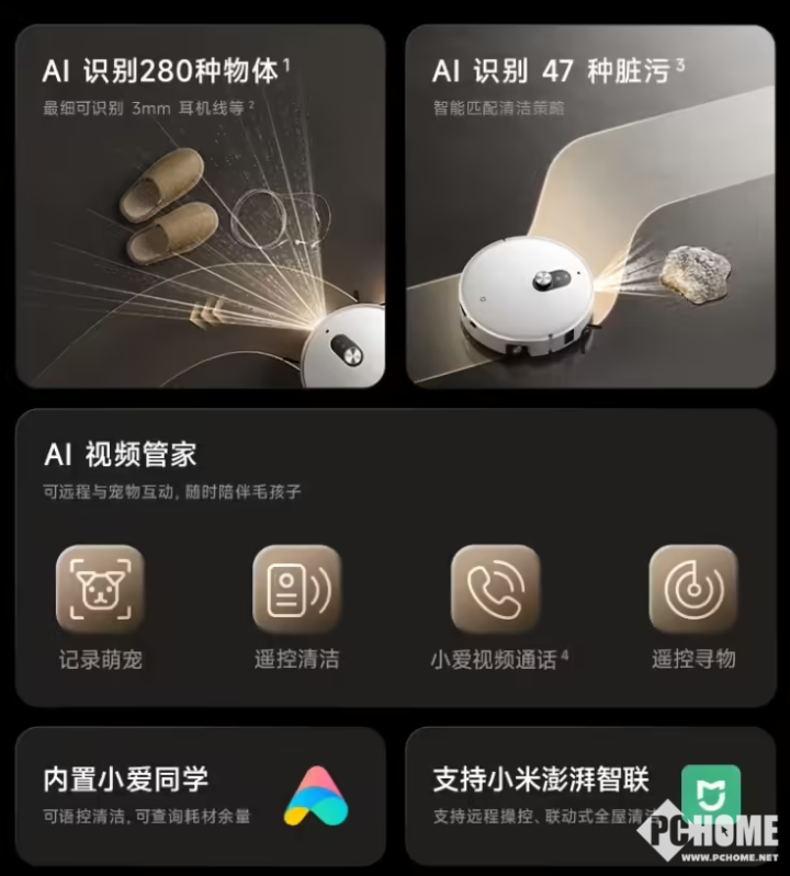 PChome 4月2日消息,今日,小米米家扫拖机器人6 Pro已开启预售,支持AI三摄全景识别,可精准识别并避开最细达3mm的耳机线等障碍物,同时智能识别47种干湿脏污,自动匹配清洁策略。