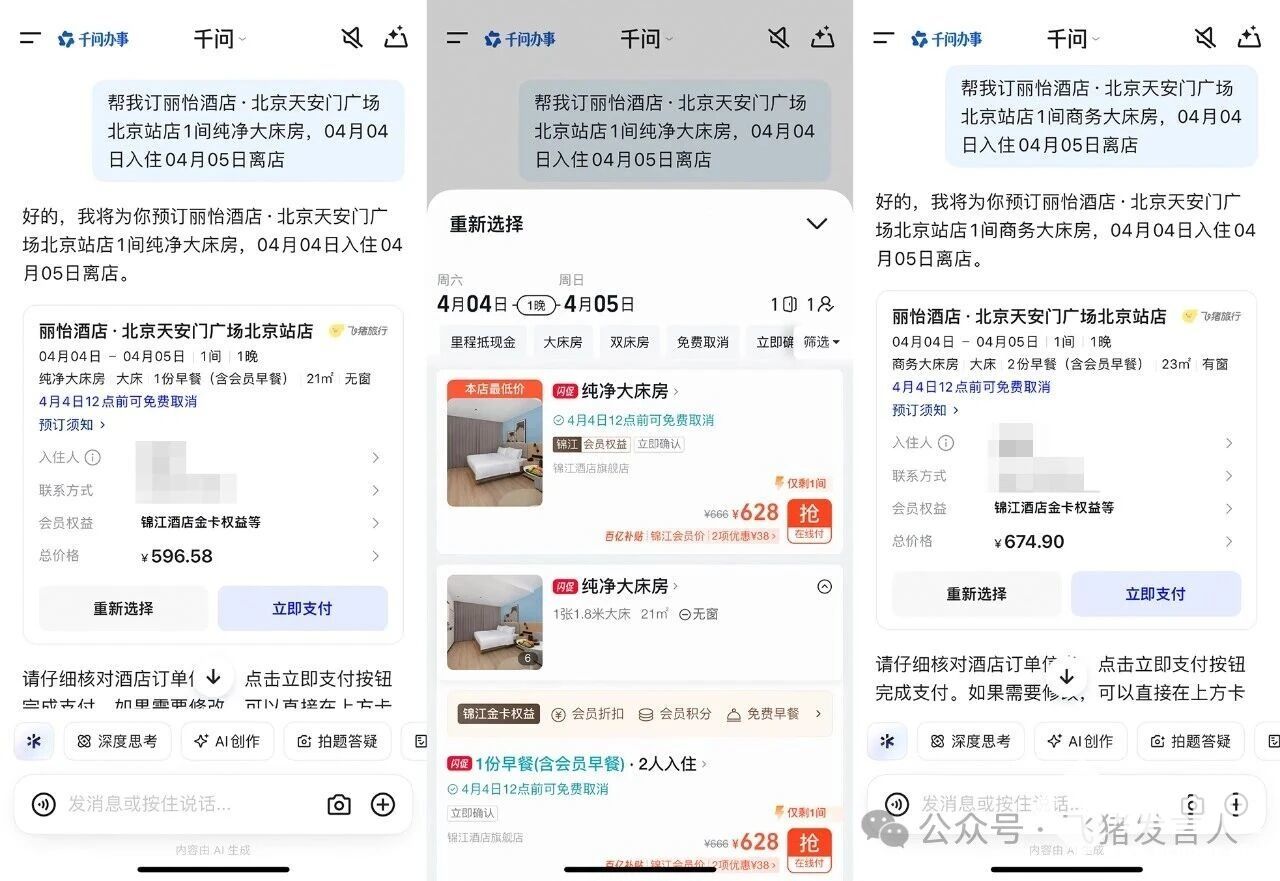 据了解,所谓的“千问价”,是飞猪与合作伙伴为千问App用户提供的渠道专属优惠,其权益包括折扣价、立减券、赠送酒店早餐、延迟退房等。这并非简单的流量导引,而是基于AI交互特性设计的定制化优惠策略,旨在提升通过自然对话进行旅行规划的用户体验。