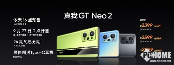 售价方面,realme GT Neo2这次带来了三个版本:8GB+128GB原价2499,首销限时立减100元,售价2399元;8GB+256GB原价2699元,首销限时立减100元,售价2599元;12GB+256GB售价2999元,首销限时立减100元,售价2899元。