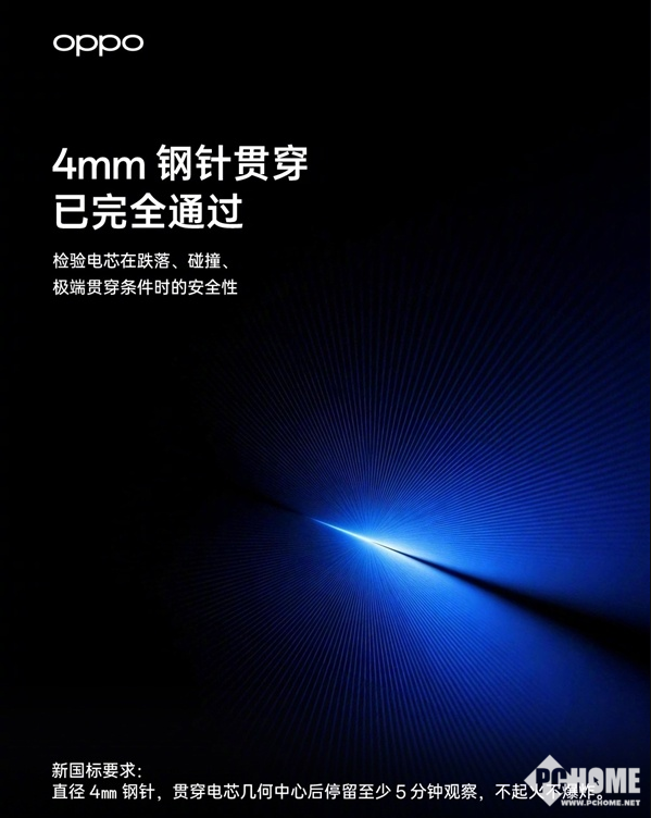 PChome 4月3日消息,充电宝新国标今日正式出台,首次引入针刺试验等严苛安全测试,OPPO同步宣布其120W快充移动电源成为首批通过全项验收的产品。