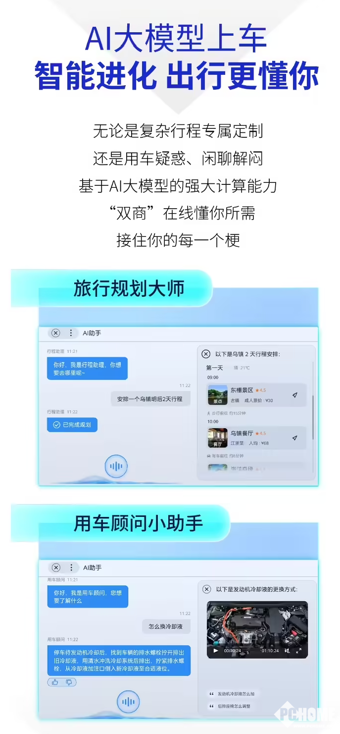 据悉,AI大模型上车功能可支持多场景智能交互,可担任“旅行规划大师”或“用车顾问小助手”,实现自然语言问答、行程规划、用车指导等,根据用户偏好自动生成个性化出行路线,整合景点、餐饮推荐及动态调整功能,提升智能化体验。