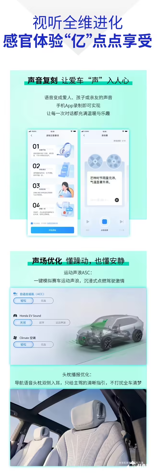 用户可通过手机App录制亲人、爱人的声音,将车机语音助手音色个性化替换,让语音对话更具情感温度。并升级运动声浪模拟、自适应巡航播报优化,支持头枕扬声器双侧入耳导航提示,主驾专属指引更清晰。