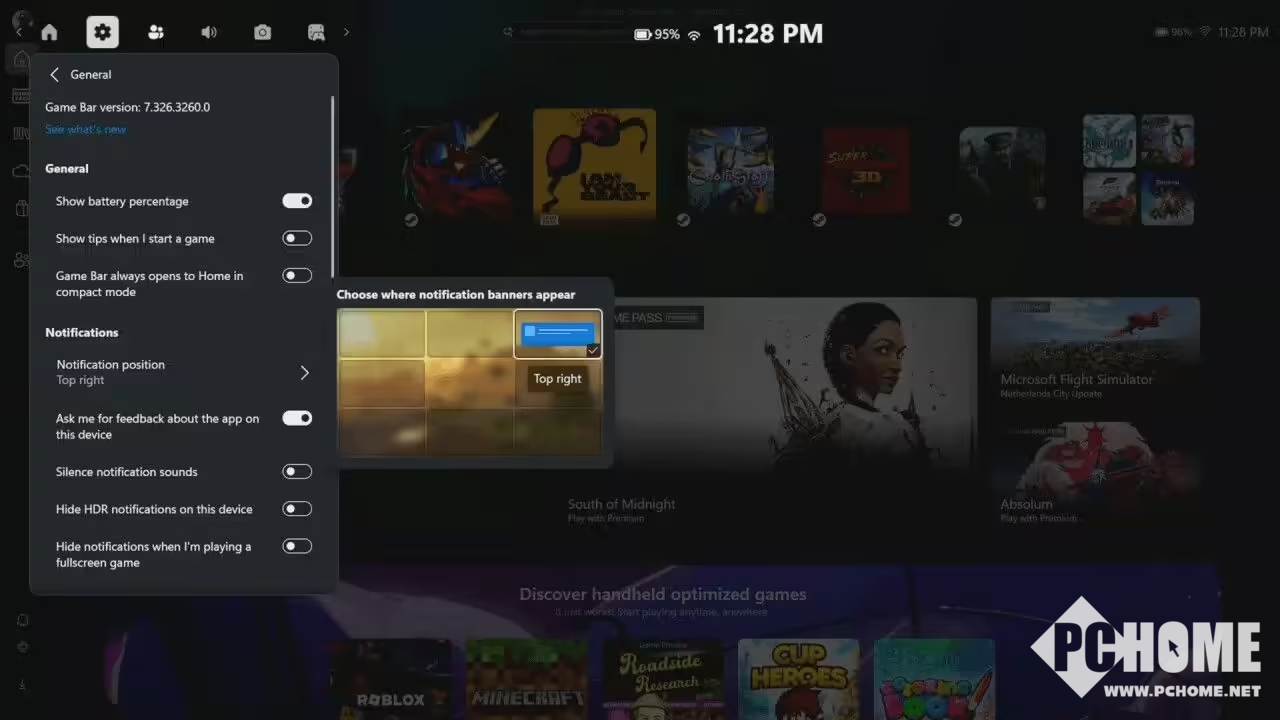 此外,更新还赋予用户更精细的通知管理权限。玩家可根据个人习惯自定义提醒弹窗位置,避免重要界面元素被遮挡或游戏过程被打扰。这种细节优化体现了微软对掌机用户实际场景的深入理解。