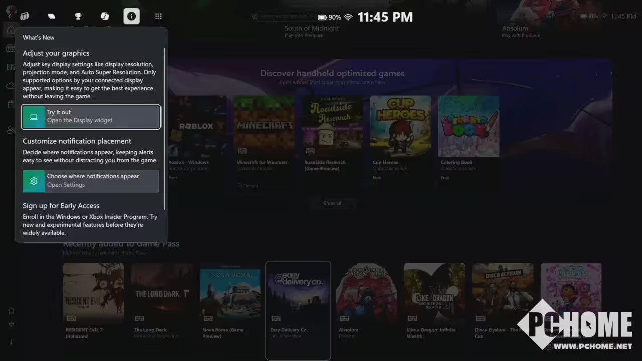 PChome 4月3日消息,昨日,科技媒体WinAero发布博文,报道称微软更新Windows 11版Xbox应用,重点为ROG Xbox Ally X等掌机设备带来显示控制小组件。