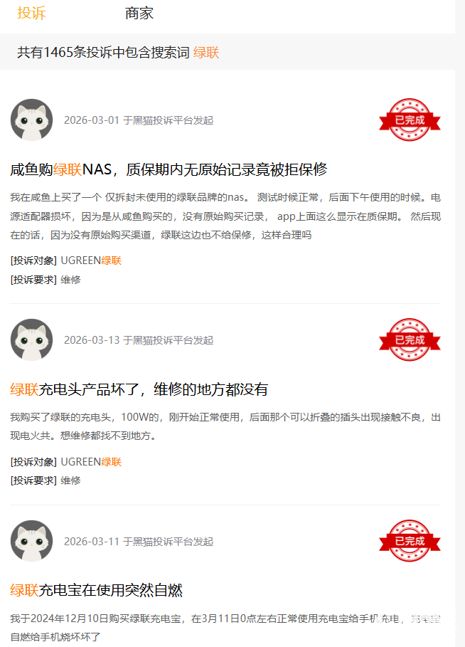 截至今日,绿联官方未发布事件调查报告或公开致歉,仅通过客服渠道沟通,被批回避产品设计或品控问题。目前事件已由消费者平台@黑猫投诉发起专项讨论,近1400条投诉指向绿联产品安全及售后问题,品牌长期口碑恐受冲击。