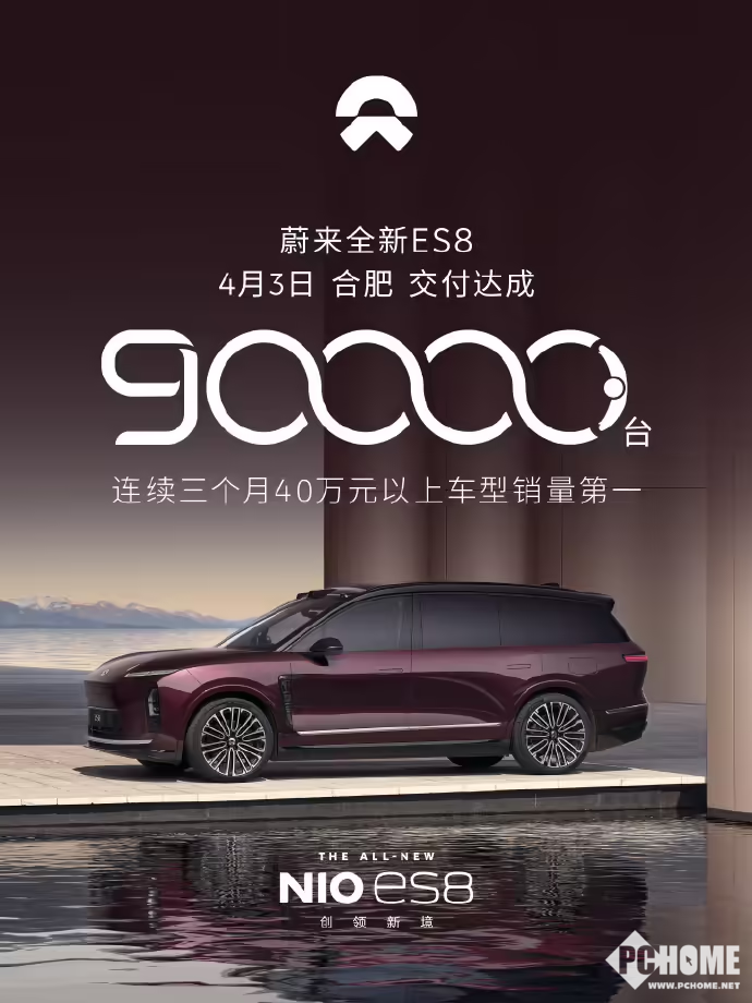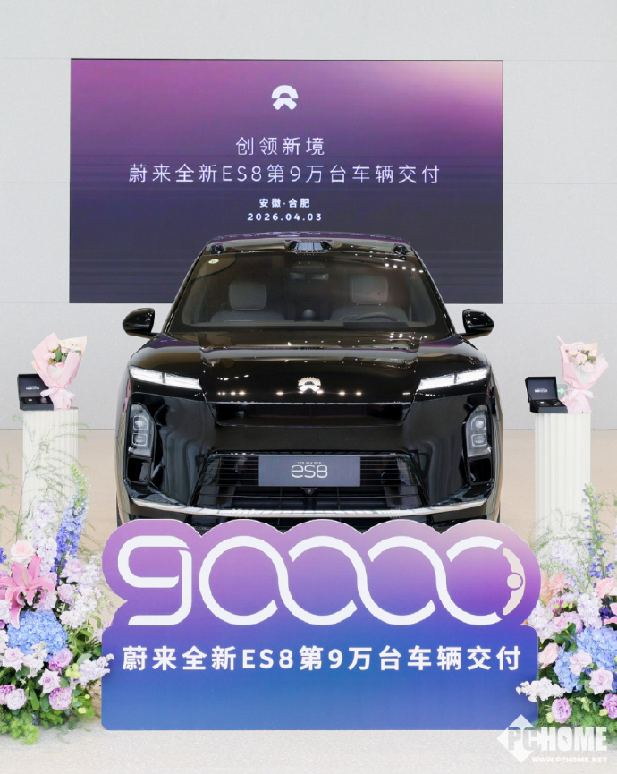 PChome 4月3日消息,今日,蔚来宣布,在合肥新桥产业园蔚来体验中心,蔚来全新ES8完成了第90000台新车交付。自2025年9月21日开启交付以来,全新ES8历时195天达成第九万台新车交付里程碑。
