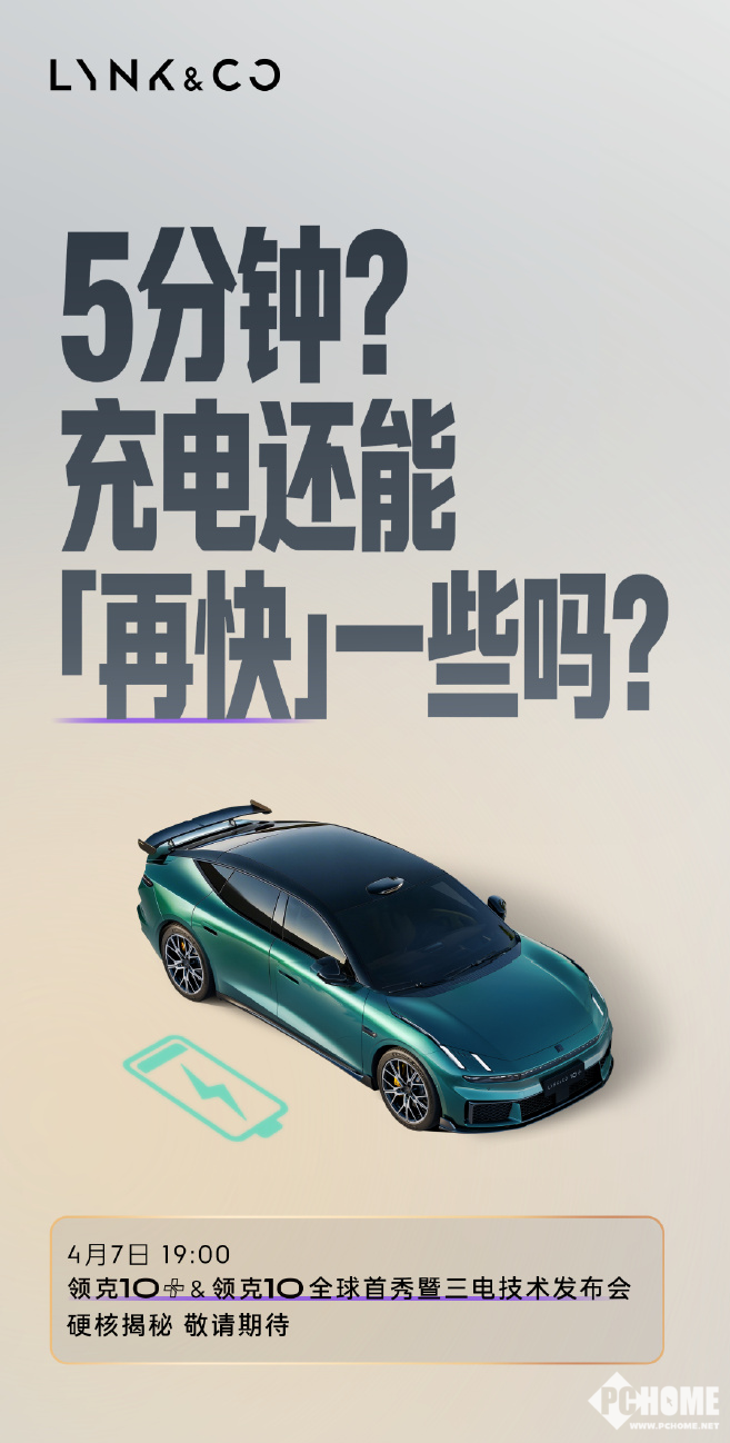 PChome 4月7日消息,今日,领克汽车宣布:领克10极速充电1秒2公里,10%—70%不用四分半。并于今日19:00举办“领克10+与领克10全球首秀暨三电技术发布会”,重点展示性能版车型的核心技术与极限测试成果。