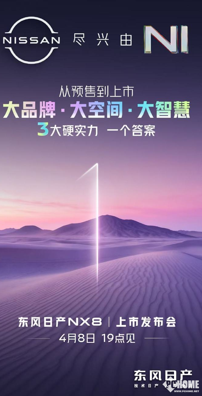 PChome 4月7日消息,今日,东风日产宣布明晚19:00将推出东风日产NX8,凭借大五座空间、800V超充与AI智能座舱等核心卖点,成为20万级家用SUV市场的焦点车型。