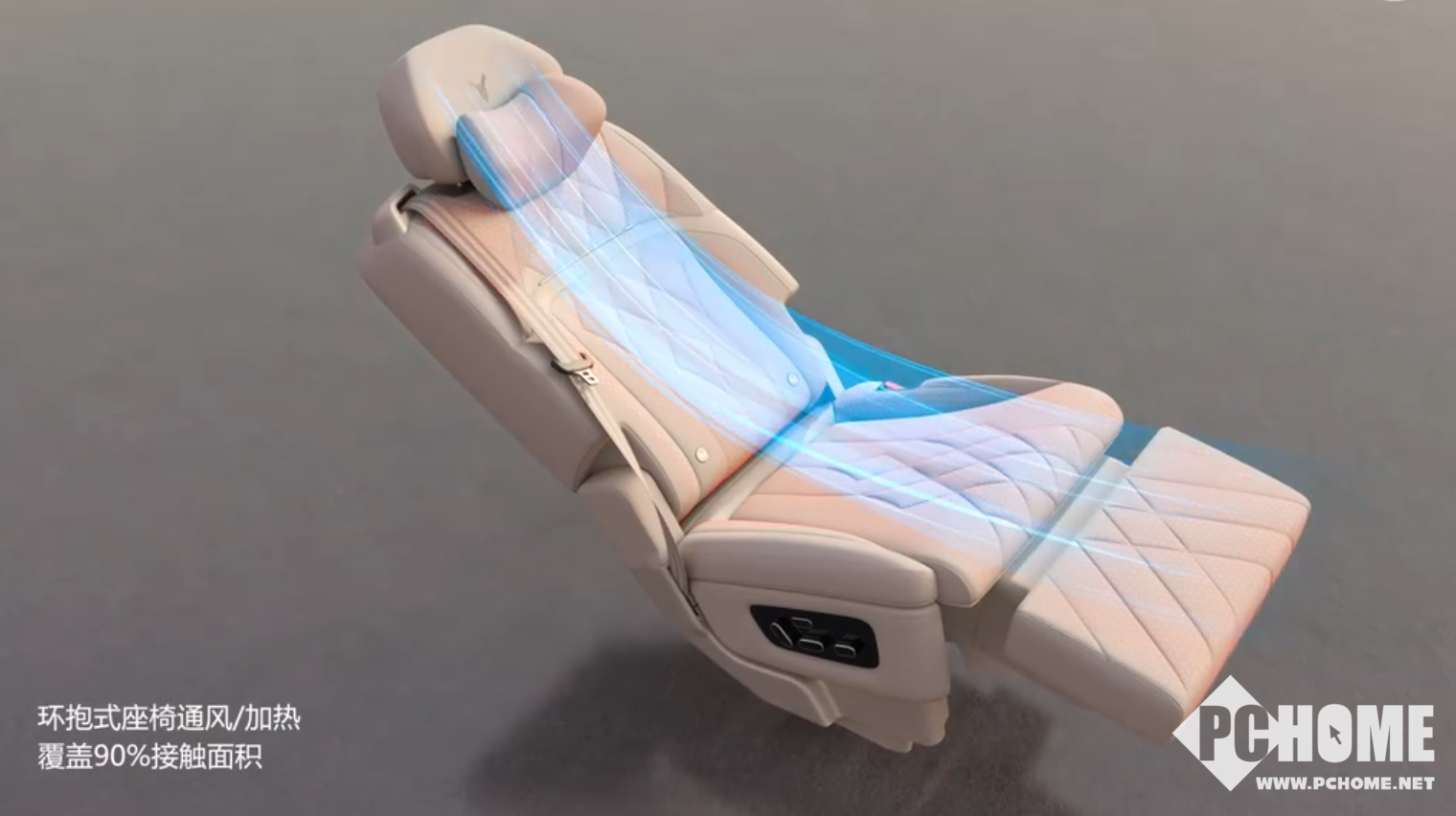 岚图泰山 X8大五座SUV还有同级唯一环抱式座椅通风/加热,覆盖身体90%接触区域。