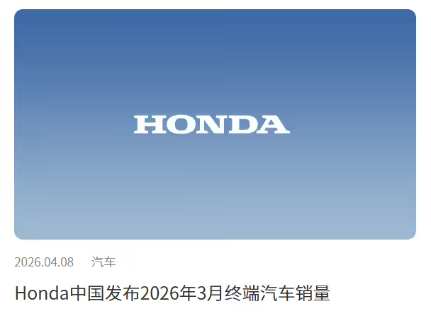 根据官方消息获悉:2026年1-3月本田在中国的终端汽车累计销量为12.25万辆辆;2026年3月本田在中国的终端汽车销量为3.62万辆;2026年3月期间,本田在中国汽车累计终端销量突破2千万辆;据本田去年3月在中国的终端汽车销量为5.51万辆,由此反映得出今年3月在中国的终端汽车销量同比下降34.34%。