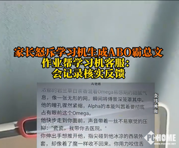 PChome 4月8日消息,继“跳楼物理题”风波后,作业帮再陷内容安全与产品伦理争议。近日,多位家长在社交平台上反映称作业帮学习机内的内置应用以及推送内容出现“ABO霸总文”等成人向网文,严重不适配学生使用场景。