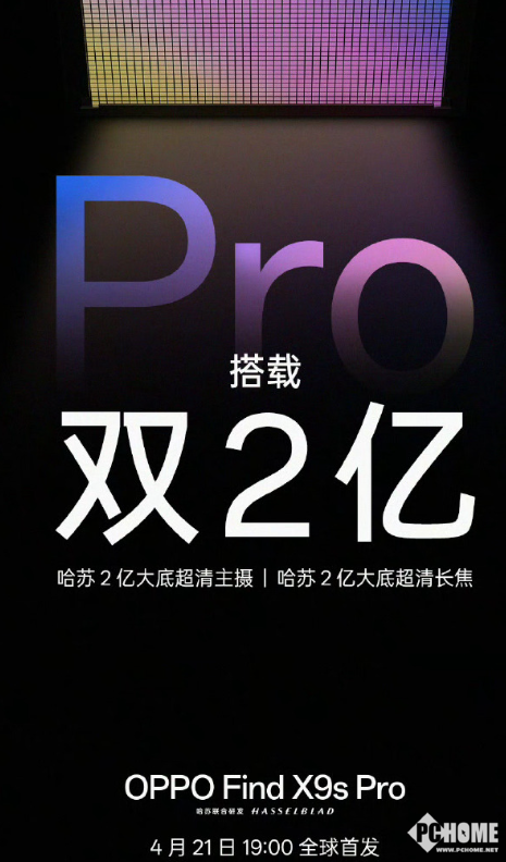 PChome 4月10日消息,今日,OPPO Find X9s Pro正式官宣,定档于4月21日19:00在成都与哈苏联合发布,主打“小屏影像旗舰”定位。