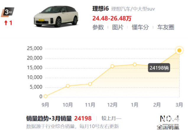 PChome根据官方数据获悉,理想i6去年9月27日正式开启交付,截止到今年4月10日已达成10万辆下线,耗时不足7个月,平均月产能约1.67万辆。今年3月单月交付量达2.42万辆,占理想汽车当月总交付量的近60%。日产量从初期约100辆提升至近800辆,产能瓶颈情况已彻底解决。