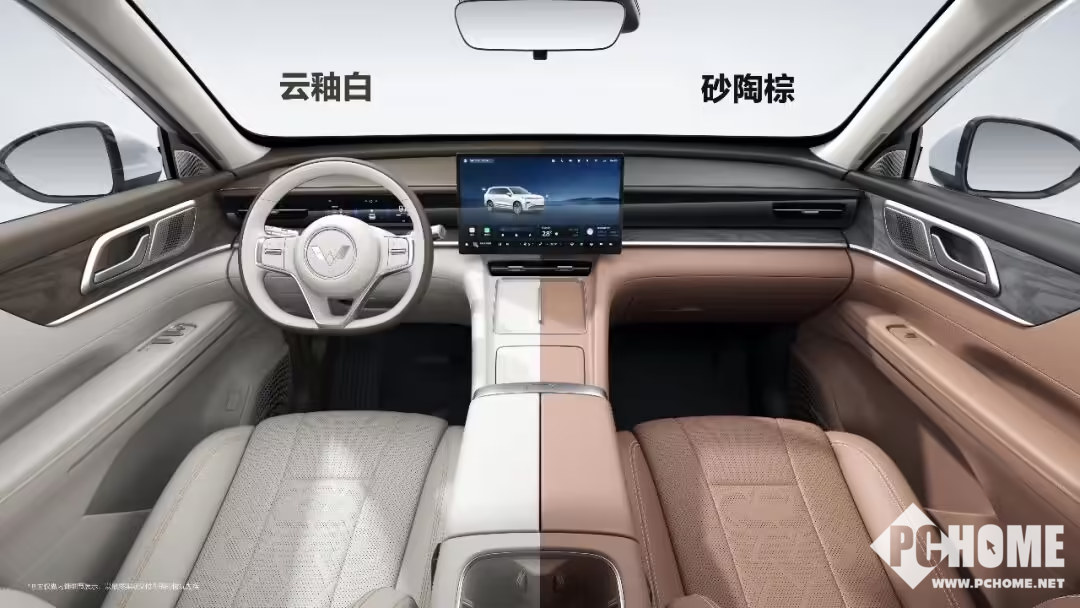 新车内饰主打典雅温馨风格,中控搭载8.8英寸数字仪表+15.6英寸中控大屏,配以256色氛围灯、副驾老板键、二排小桌板和书法墨韵三幅方向盘,细节用料注重质感,使用镭雕擦色木纹饰板与亲肤材质座椅。车身尺寸为4980mm×1930mm×1760mm,轴距达2950mm,采用2+2+2独立六座布局,强调每排乘客的舒适性与空间实用性。