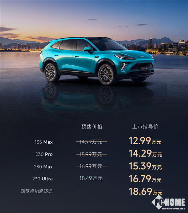 PChome获悉,新车车身尺寸4870×1930×1710mm,轴距2920mm,后排腿部空间达1095mm,提供38处储物空间,后备箱容积573L-1597L。内饰配15.6英寸2.5K屏、17.3英寸后排娱乐屏、23扬声器音响及2㎡全景天幕。前排双零重力座椅支持16向调节、通风加热与按摩。