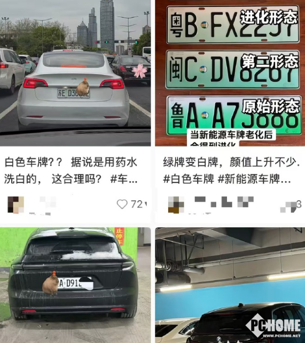PChome 4月14日消息,一则关于“多地新能源车牌绿色变白色”的话题今日登上微博热搜首榜,不少网友以为是新能源车牌新样式,发现其是网友自己“做旧褪色”。