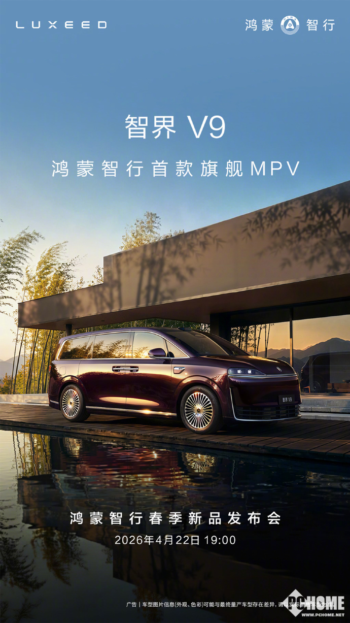 PChome 4月15日消息,今日,智界汽车正式官宣智界V9将于4月22日开启预订。