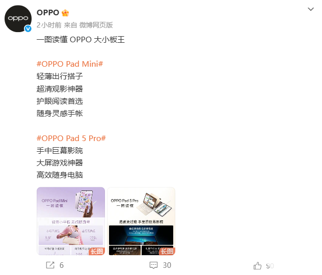 官方信息显示,OPPO Pad Mini平板提供8GB+256GB、12GB+256GB、12GB+512GB三种配置选择。被定位为“随身灵感手帐”与“差旅出行无负担”的轻量级生产力工具。此外,ColorOS 16可实现与手机/电脑无缝协同,支持跨屏操作、文件互传及通话短信流转(兼容iOS设备)。提高用户办公、学习效率。
