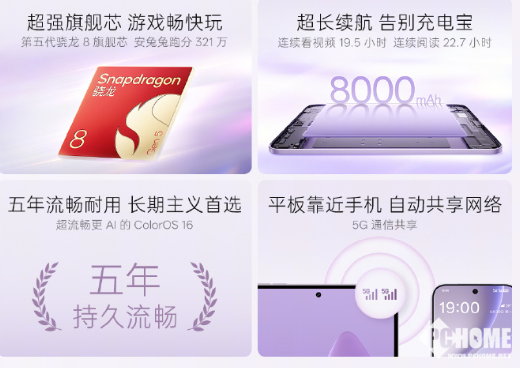 新品支持 OPPO AI手写笔,具备全新笔尖、拟真振感、响铃查找功能,并支持AI绘图表、AI绘画等智能创作能力。并能运行更AI化的ColorOS 16,官方称支持72个月久用流畅,主打长期使用体验。