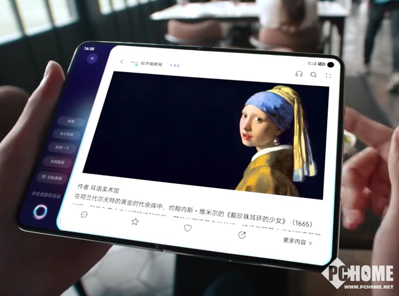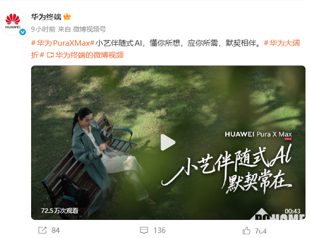 PChome 4月17日消息,今日,华为终端官方宣布,行业首款横向阔折叠手机——华为Pura X Max将搭载全新小艺伴随式AI,主打“懂你所想,应你所需,默契相伴”。