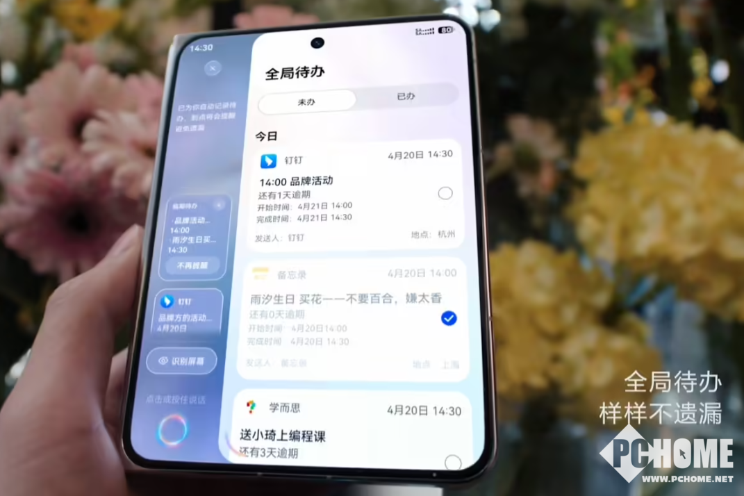 PChome根据官方视频显示了解到,全新小艺伴随式AI将支持如下功能:智能待办可智能识别当前App显示的信息,并提供加入待办/日历的功能,同时还将提供主动识别屏幕的功能;行程助手可智能识别当前App显示的信息,并为用户提供路线规划、预计行程所需时间、协助查询航班信息、支持一键打车等功能;全局待办可实现智能自动记录、整理待办事项,同时可以一键查看具体的事件内容、时间、地点等信息;