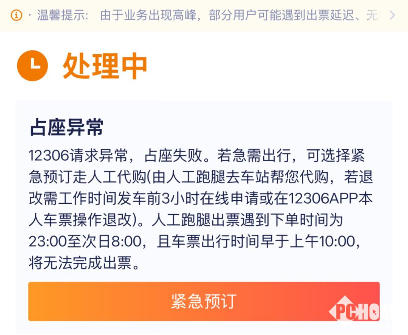 PChome 4月20日消息,据九派新闻4月19日报道,近日多位网友反映在携程、滴滴等商旅平台订购火车票时频繁显示“12306请求异常”“占票失败”等问题。对此,携程、滴滴等平台客服回应称是12306风控系统升级及五一购票高峰叠加所致,目前正紧急修复中。