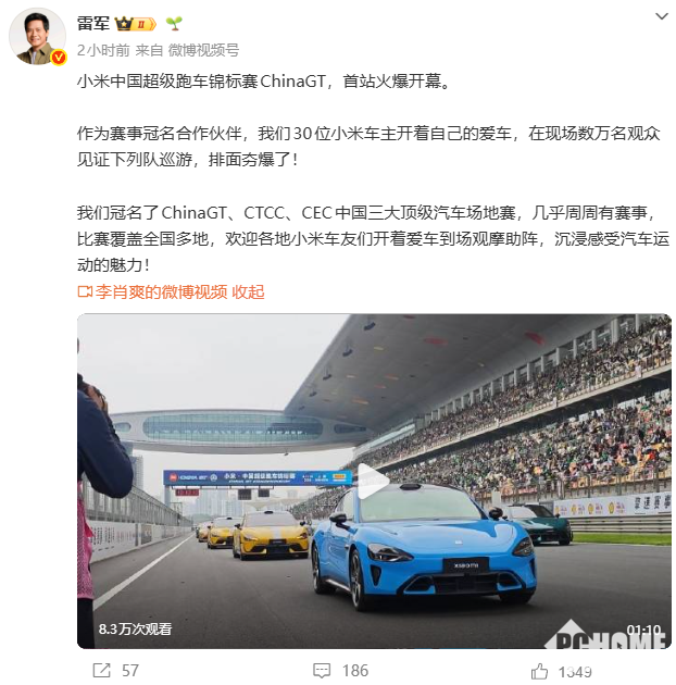PChome 4月20日消息,今日上午,小米创办人、董事长兼CEO雷军发布博文称,小米中国超级跑车锦标赛ChinaGT,首站火爆开幕。并冠名了ChinaGT、CTCC、CEC中国三大顶级汽车场地赛,几乎周周有赛事,比赛将覆盖全国多地。