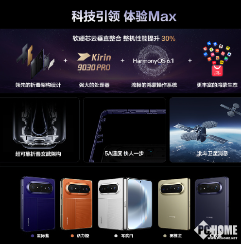 PChome获悉,新机全系均搭载麒麟9030 Pro芯片,其中,标准版将搭载麒麟9030,典藏版则升级至性能更强的麒麟9030 Pro,并采用3nm工艺,CPU/GPU性能较前代提升25%-60%,多任务处理能力显著增强。同时,还将搭载鸿蒙6.1系统,深度优化阔屏分屏交互,适配120款头部应用,如微信、抖音等,可实现多窗口同开流畅操作。