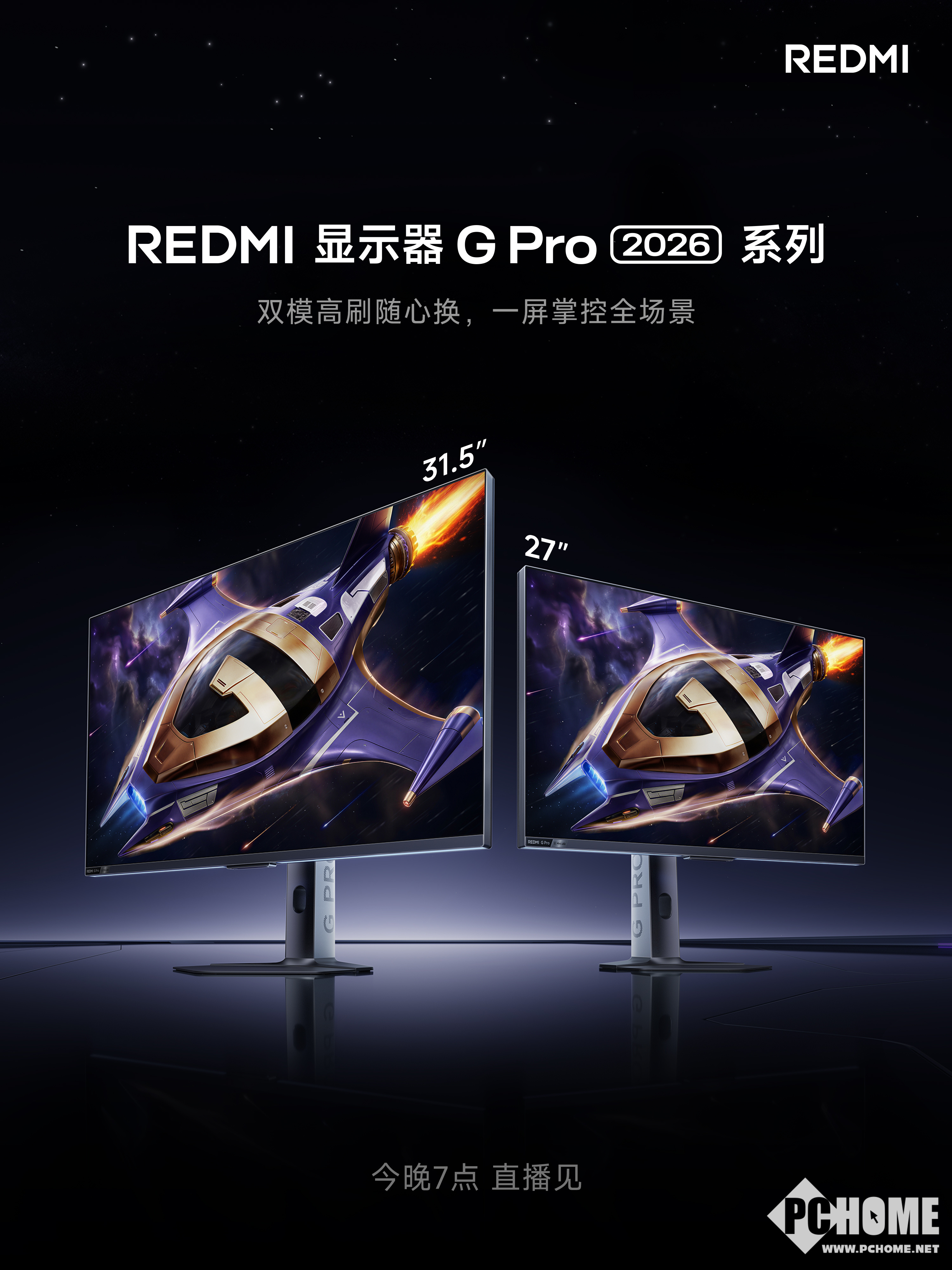 PChome 4月21日消息,小米正式发布REDMI显示器G Pro 2026系列,该系列包含27英寸与31.5英寸两款机型,预售价分别为2699元和3199元,并于晚上8:00正式开售。作为全新的电竞旗舰,该系列打破了显示器与电视的边界,内置澎湃OS 3系统,支持小爱同学语音交互,实现了“显示器+电视”的双形态切换。