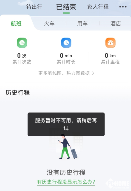 PChome 4月21日消息,航旅纵横官微发文称,4月21日中午12:30左右,航旅纵横App出现部分功能使用异常的情况。建议旅客暂时通过航空公司、机场柜台等渠道查询行程及办理登机手续。