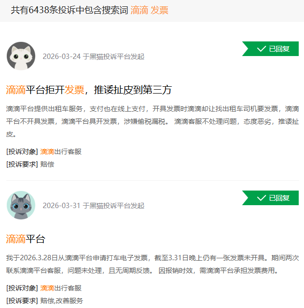 据黑猫投诉平台,针对滴滴发票投诉多达6400多条,均与拒绝开具发票的争议相关。针对相关争议,滴滴方面回应称,该设置旨在简化多数个人用户的支付流程,并非有意阻碍用户开票。目前,滴滴已注意到用户反馈,表示将对发票申请流程进行优化,提升用户体验,确保用户能更便捷地获取发票。