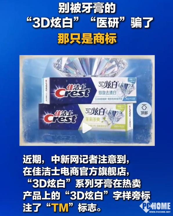 PChome 4月21日消息,近日,佳洁士牙膏因包装上的“锁白”“3D炫白”字样引发争议,消费者发现这些看似功效宣传的词语实为注册商标。产品包装虽以醒目大字突出“锁白”“3D炫白”,却在底部用小字标注“Whitelock为注册商标,并非功效宣称”或“3D炫白是注册商标,非功效宣称”。宝洁公司客服回应称,“锁白”确为注册商标,该款牙膏并无“锁白”功效,仅具备去渍、防渍作用;“3D炫白”同样是注册商标。