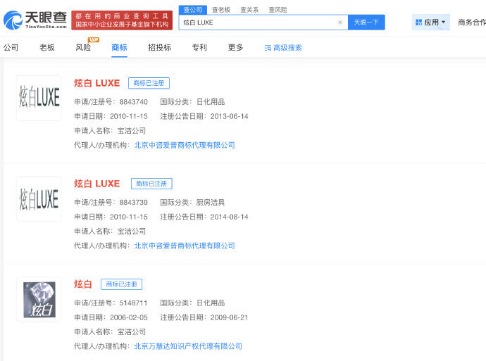 国家商标局信息显示,宝洁公司已成功注册“佳洁士锁白”“佳洁士3D炫白”等商标。然而,这种“大字宣传、小字免责”的方式被指极易误导消费者,使其误将商标当作功效承诺。目前,广州市12345政务服务热线已收到相关投诉,将转交部门核查是否构成误导行为。