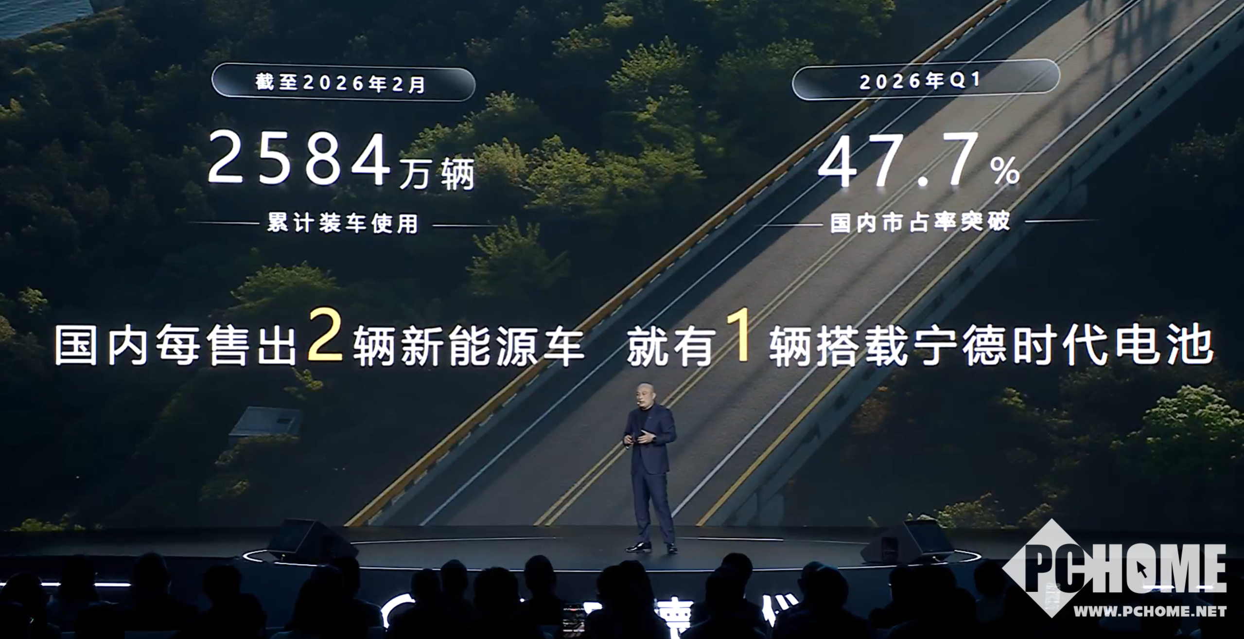 PChome 4月21日消息,宁德时代首席技术官高焕宣布,截至2026年2月,搭载宁德时代电池的新能源车累计达2580万辆。宁德时代的国内市场占有率突破47%,相当于国内每售出2辆新能源车,就有1辆搭载宁德时代电池。