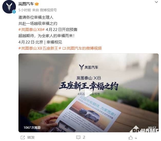 PChome 4月22日消息,岚图汽车旗下全新大型SUV“泰山X8”现已开启预售,该车首搭华为全新一代896线四激光雷达。