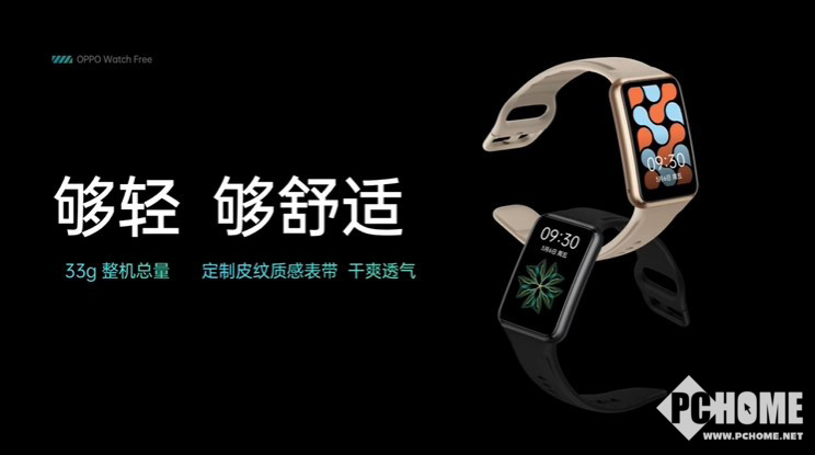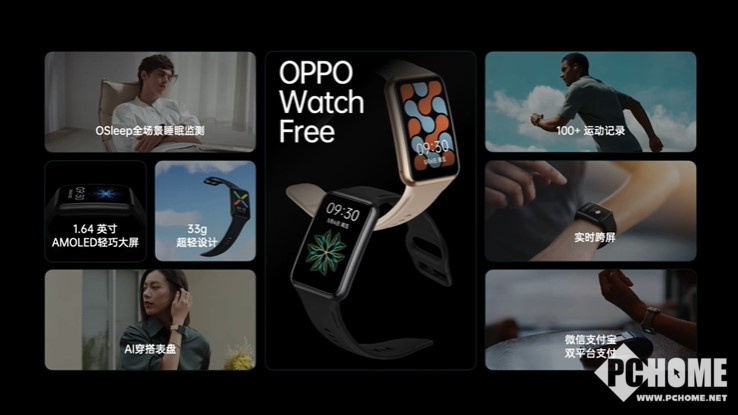 硬件方面,OPPO Watch Free 采用 1.64 英寸 AMOLED 矩形屏幕,屏幕像素密度达 326ppi,覆盖 100% DCI-P3 色域,配备定制皮纹质感表带,机身尺寸 46.0mmx29.7mmx10.6mm,重量只有 33g,搭载六轴运动传感器、光学心率传感器、光学血氧传感器、环境光传感器,主打睡眠监测。