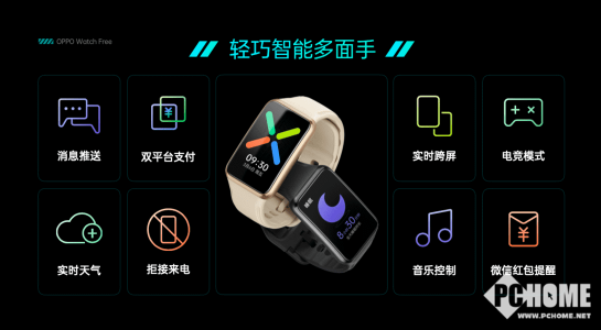 续航方面,OPPO Watch Free 普通模式续航可以满足 14 天需求,支持快充 5 分钟即可使用一整天。其它方面,OPPO Watch Free 还支持电竞模式(需相应手机支持),显示王者荣耀复活时间,查看消息提醒,记录游戏时心率变化,甚至连游戏时消耗的热量都可以记录。OPPO Watch Free 还支持实时跨屏消息、微信支付宝双支付和多种基础便捷功能。