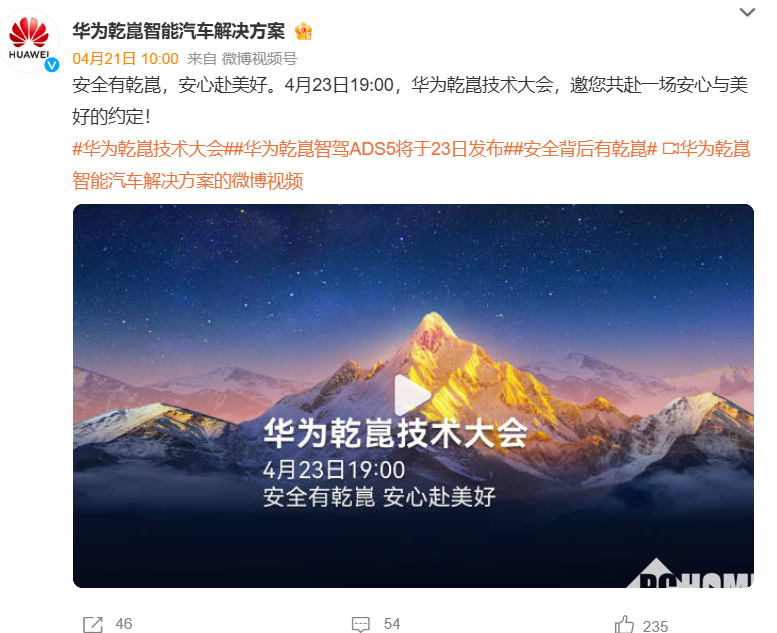 PChome 4月23日消息,今日,央视新闻与华为乾崑再度携手,重磅呈现《安全有乾崑 安心赴美好|华为乾崑技术大会》。邀请网友于今晚19:00共同见证中国智能网联汽车全栈技术升级,其导语为——向新而行,向优而进。