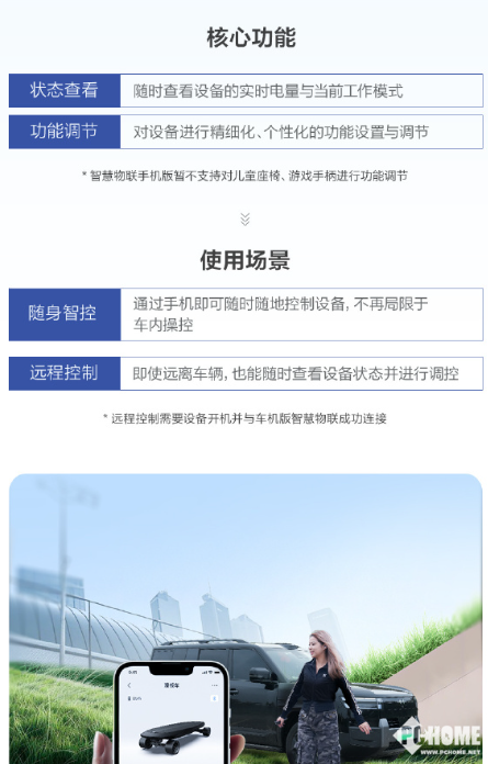 此外,即使用户远离车辆,也能通过手机查看设备电量、工作模式,并进行功能调节,但需设备保持开机并与车机成功连接的状态下进行。该功能可支持随时监控设备运行状态,提升用户使用便捷性与安全性。