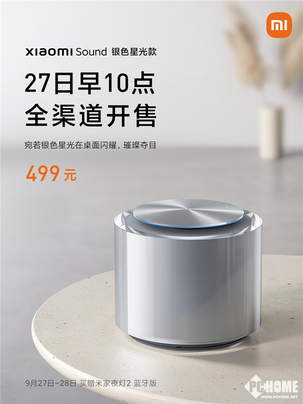 今日上午10点,小米Sound银色星光版正式开售,售价499元。小米Sound采用环形透明机身,珠光银色机身可与环境光发生奇妙折射反应,宛若银色星光在桌面闪耀,悬浮式触控顶盖,360度全向上出音,在保证颜值的同时兼具功能性。