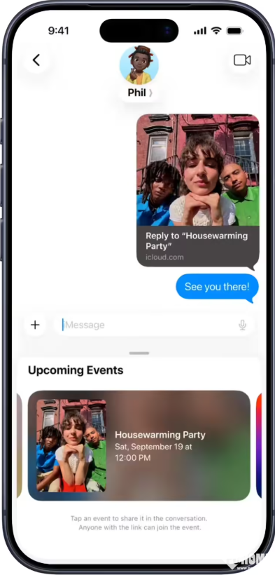 PChome 4月24日消息,苹果于昨日更新了Apple Invites应用至1.8版,距离上次更新相隔1个月,并新增7项功能,核心亮点在于推出了全新的iMessage应用,用户无需退出短信界面即可快速分享邀请函。