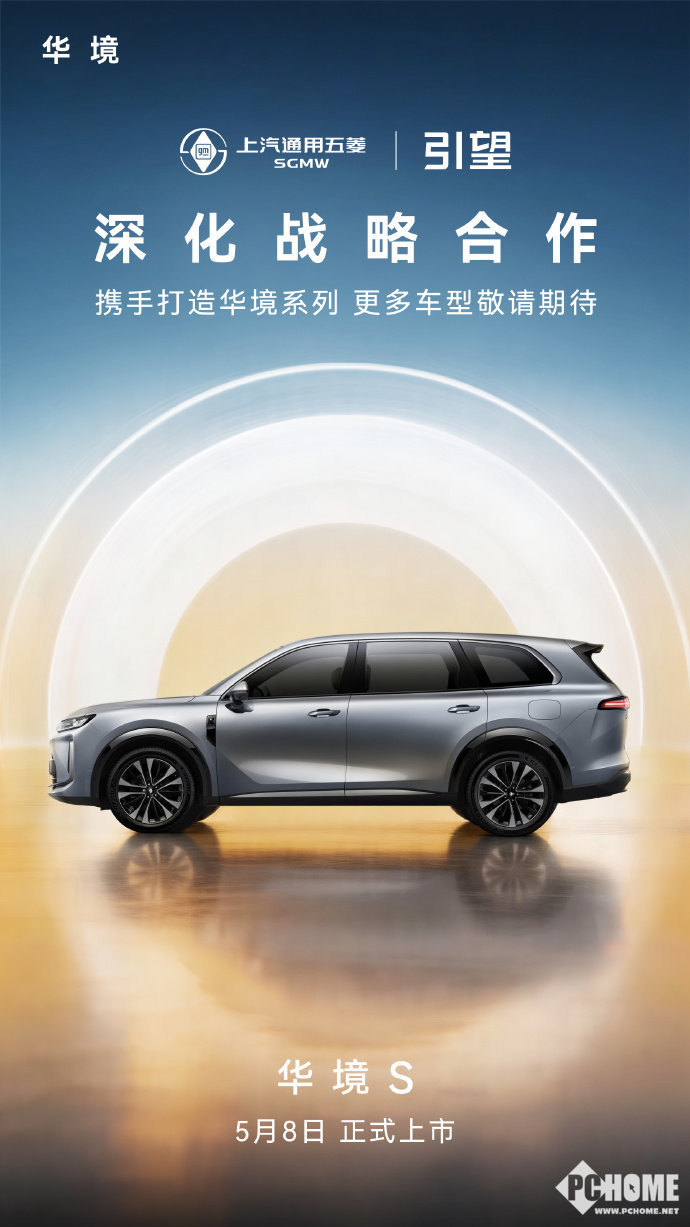 PChome 4月24日消息,在今日北京国际车展上,上汽通用五菱与华为乾崑正式签署全面深化战略合作协议,并官宣双方合作的首款旗舰车型——华境S将于5月8日正式上市。此次签约标志着双方合作从原有的“三智”技术协作,全面升级为涵盖产品定义、造型设计、营销合作等领域的深度战略联动,合作车型也将从华境S拓展至整个华境系列。