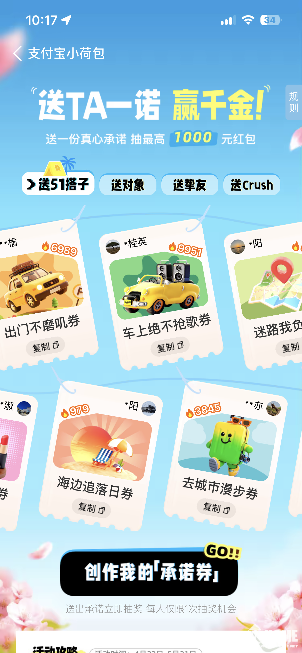 支付宝于4月26日官宣上线小荷包“承诺券”功能,该功能通过小额资金共存共管的方式解决朋友日常约定容易“放鸽子”的社交痛点。