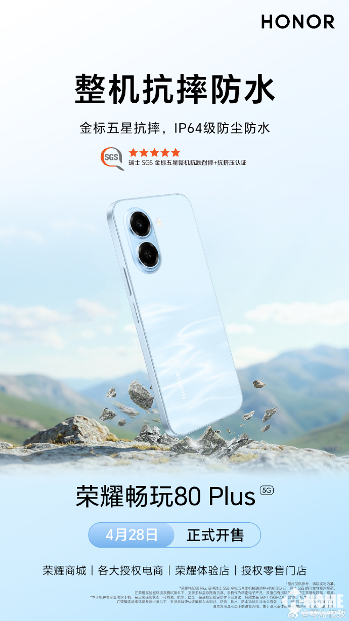 此外,该机还将骁龙4Gen4处理器,预装基于Android 16的MagicOS10.0系统,机身尺寸为163.9mm×75.9mm×8.29mm、重量约205g,并配有USB Type-C接口。其通过瑞士SGS金标五星抗摔认证,支持IP64级防尘防水,整机坚固耐用。