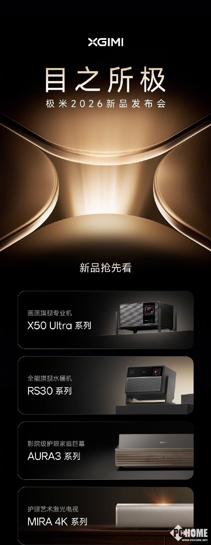 PChome 4月27日消息,极米科技正式官宣其2026新品发布会定档于4月29日晚20:00举办。极米将在发布会上推出四大旗舰级投影新品,涵盖画质旗舰专业机、全能旗舰机、影院级护眼家庭巨幕以及护眼激光电视。