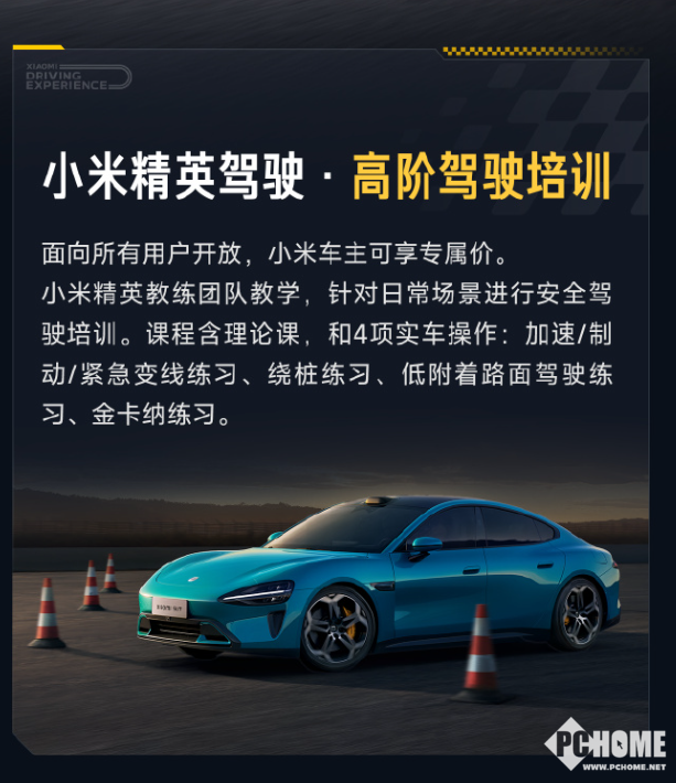 据官方信息得知,“小米精英驾驶”包括三大活动内容——高阶驾驶培训、赛照培训、赛道体验。其中,高阶驾驶培训面向所有用户开放。由小米精英教练团队教学,将聚焦日常安全驾驶能力提升,包含1项理论课与4项实操训练——加速/制动/紧急变线、绕桩练习、低附着路面驾驶、金卡纳综合驾驶训练,帮助用户掌握车辆极限与应急处理技巧。