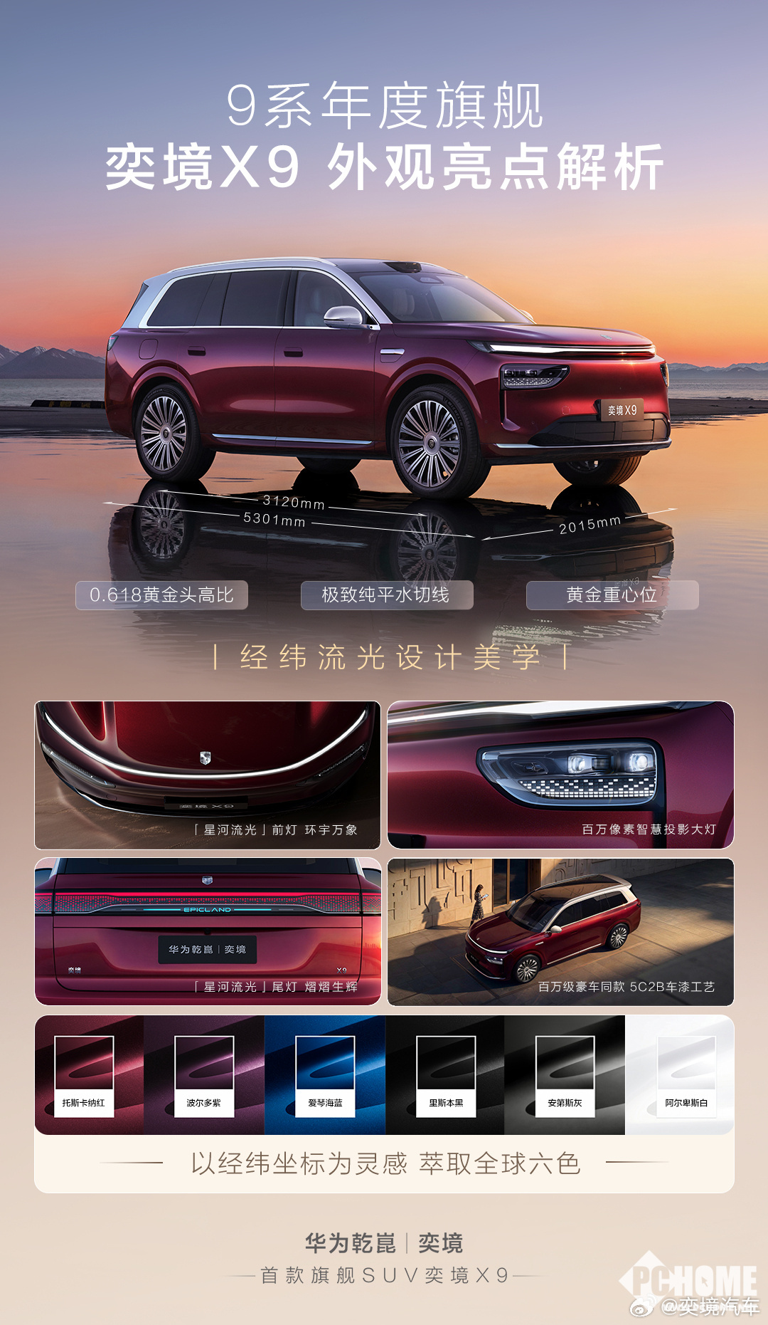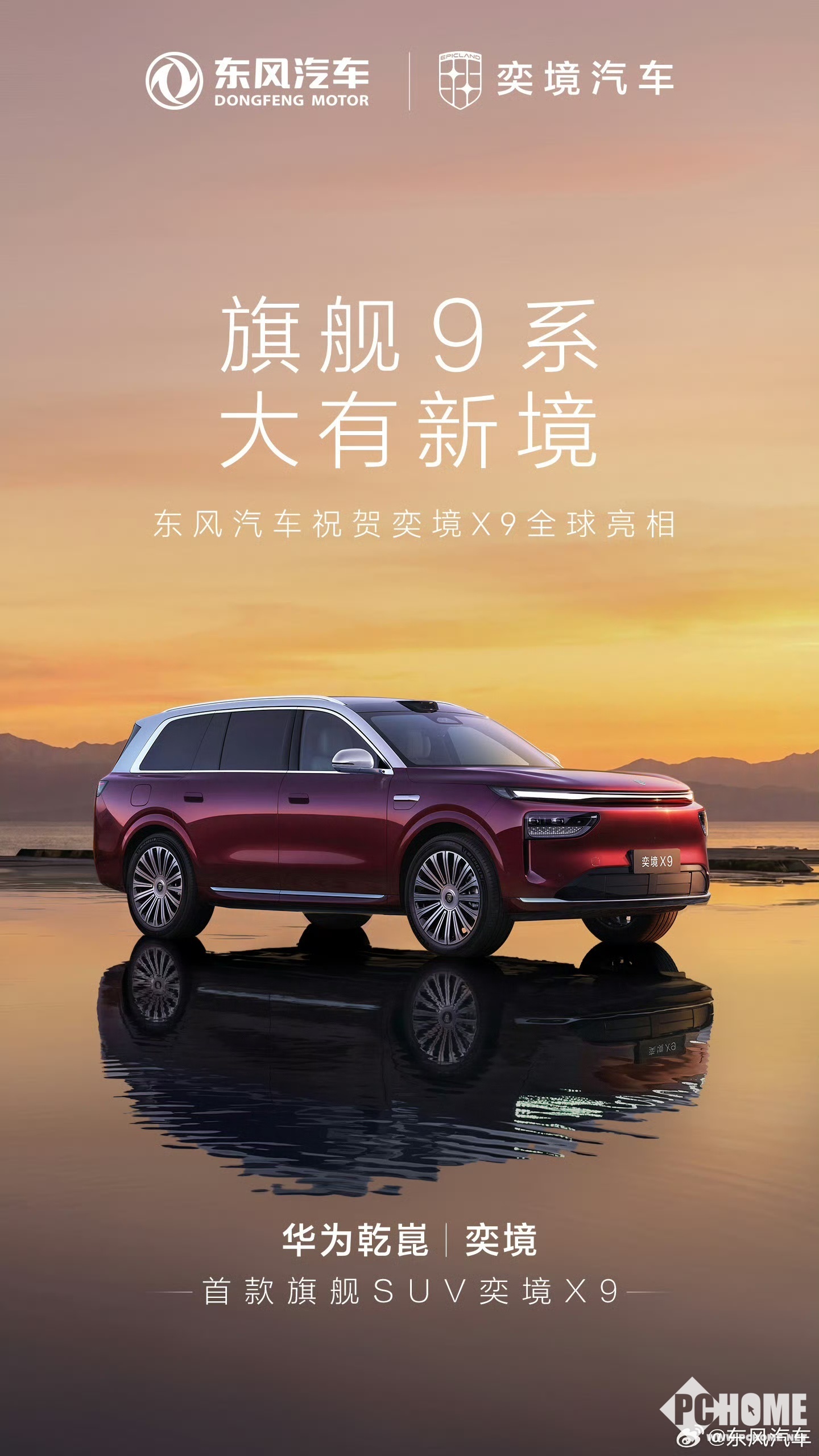 PChome 4月24日消息,由东风汽车与华为乾崑联合打造的高端新能源品牌奕境汽车在2026年北京国际车展上正式亮相,其旗舰大六座SUV——奕境X9在车展上全球首秀。新车官宣行业首发后排吸顶柔光屏,采用独特的柔光设计,号称“强光也清晰”,能有效避免反光。